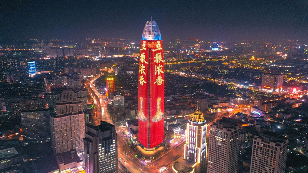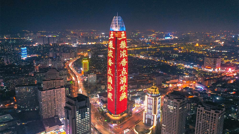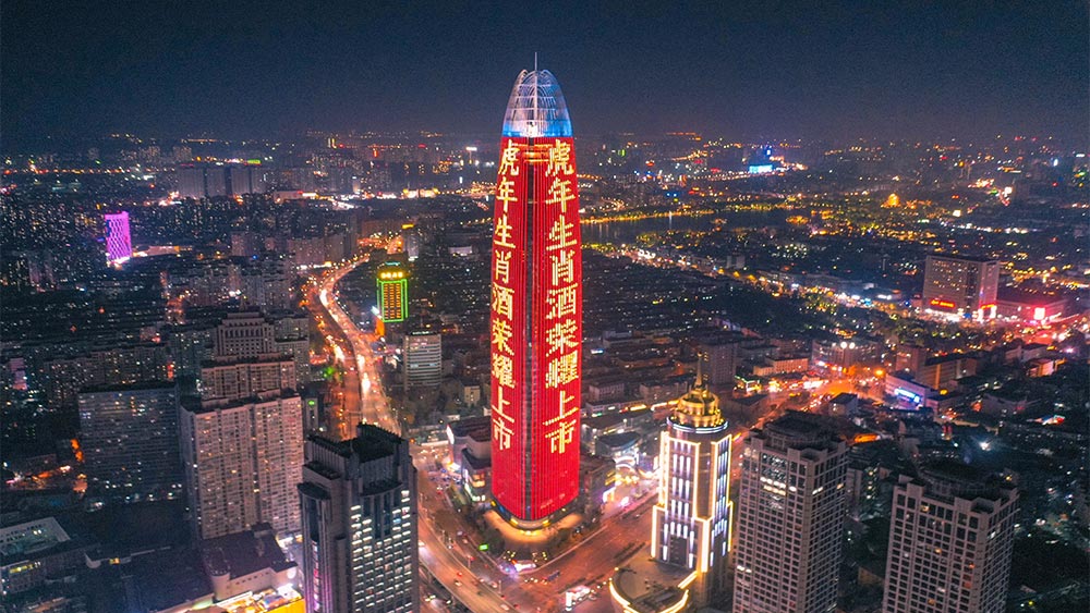 (五糧集團投放濟南地标媒體——濟南綠地中心高媒廣告)