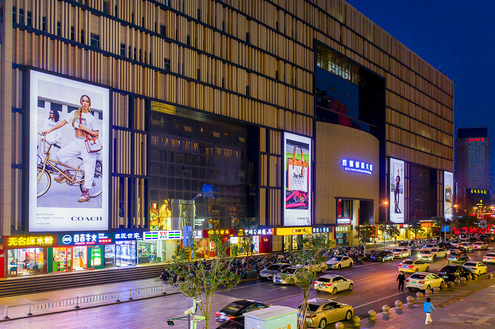 (COACH投放在齊魯國(guó)際大廈矩陣燈箱廣告)