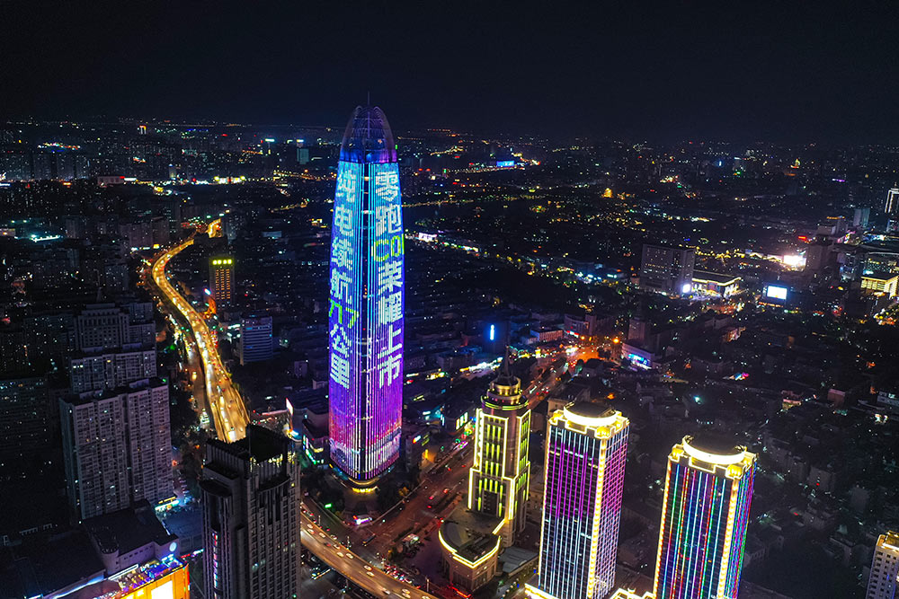 (零跑汽車投放濟南地标媒體--濟南綠地中心廣告)
