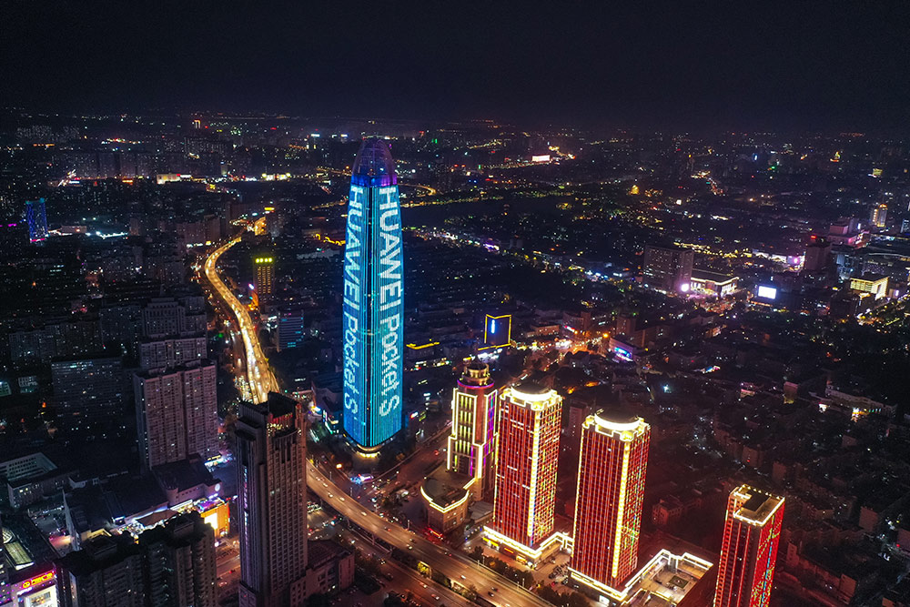 (華為Pocket S投放濟南地标媒體--濟南綠地中心廣告)