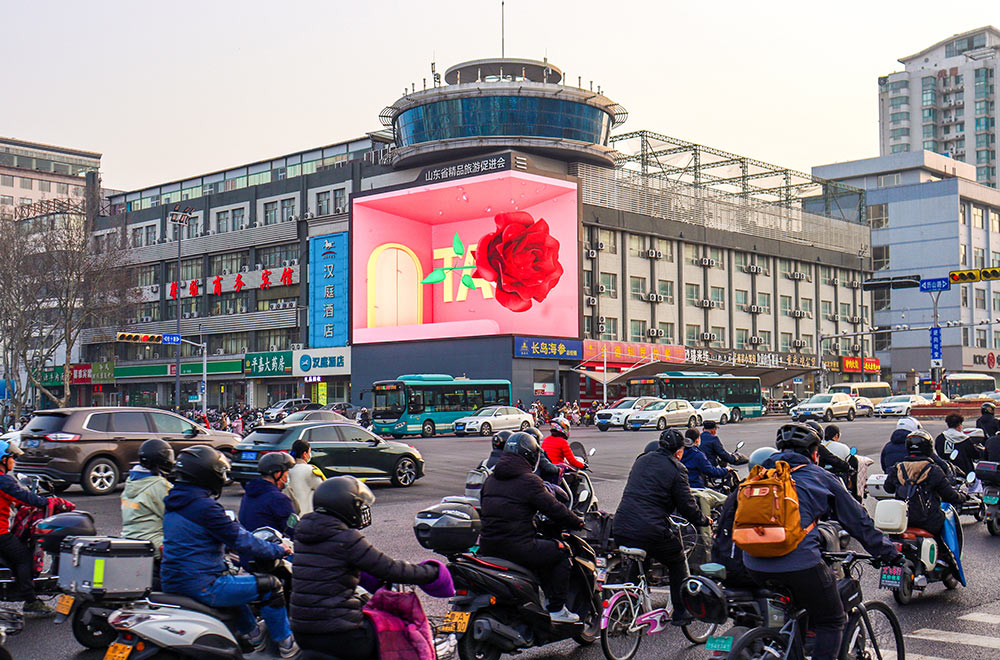 3月8日女神節,華途傳媒聯合TATA木門品牌利用經(jīng)十路裸眼3D巨幕LED大在線GO屏,定制一顆巨型愛心和一朵巨型玫瑰花在女神節早高峰7:00-7:30,霸屏文案“你守護TA的少女大地直播心,我“門”圓TA的公主夢”半小時(shí),向(xiàng)泉城女性緻敬向(xiàng)泉城高清版在線女神表達節日祝福。