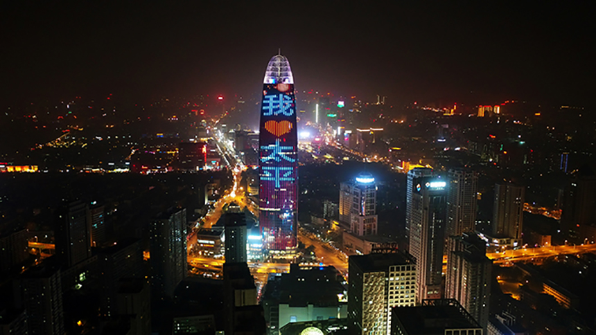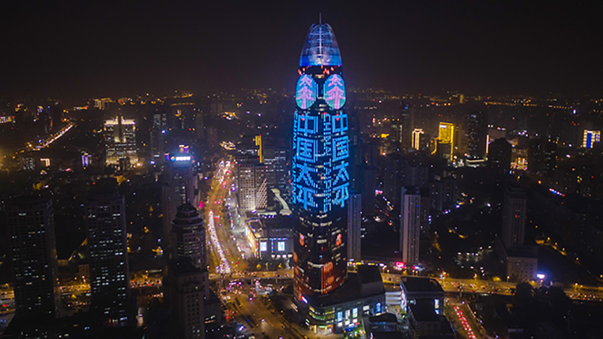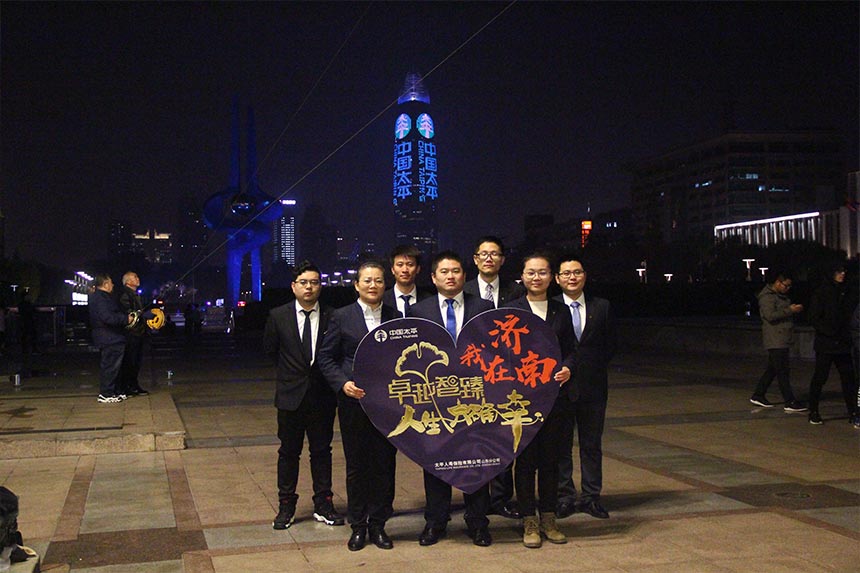 (中國(guó)太平投放濟南綠地第一高媒外泛光廣告)