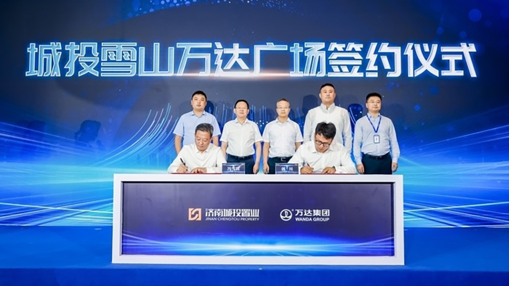 濟南城投置業董事(shì)馮雪嵩,萬達集團發(fā)展中心山東區副總經(jī姐姐藝術ng)理郭川簽署戰略合作協議并合影留念,至此,城投雪山萬達廣場戰略合作正式達成(chén成全高清g)。