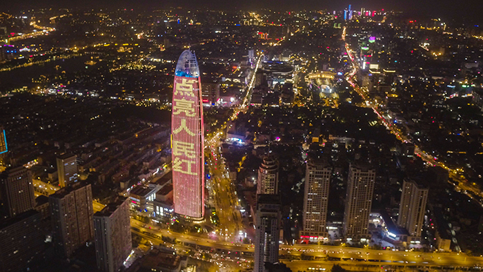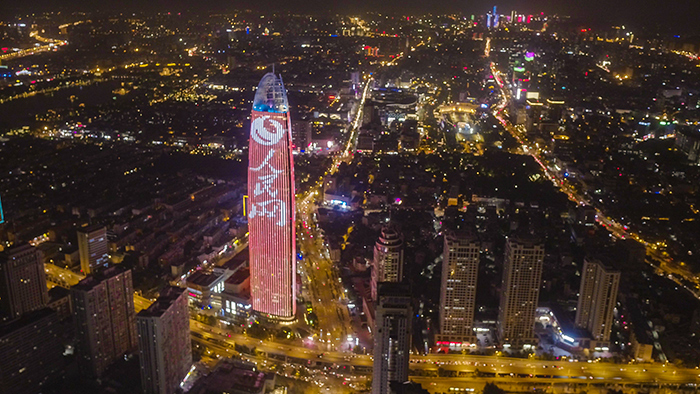 9月20日晚動漫高清版,人民網“向(xiàng)祖國(guó)表白”公益燈光秀在華途傳媒濟南市綠地中心地免費中文版标點亮。