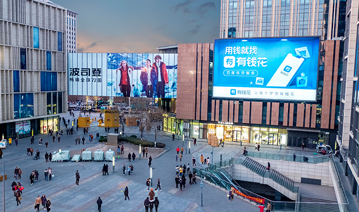 百度信貸聯手山東華途傳媒通過(guò資源直播)濟南“流量之窗”世茂廣場(寬厚裡(lǐ))戶外牆體燈箱廣告,精準覆蓋消費人群。