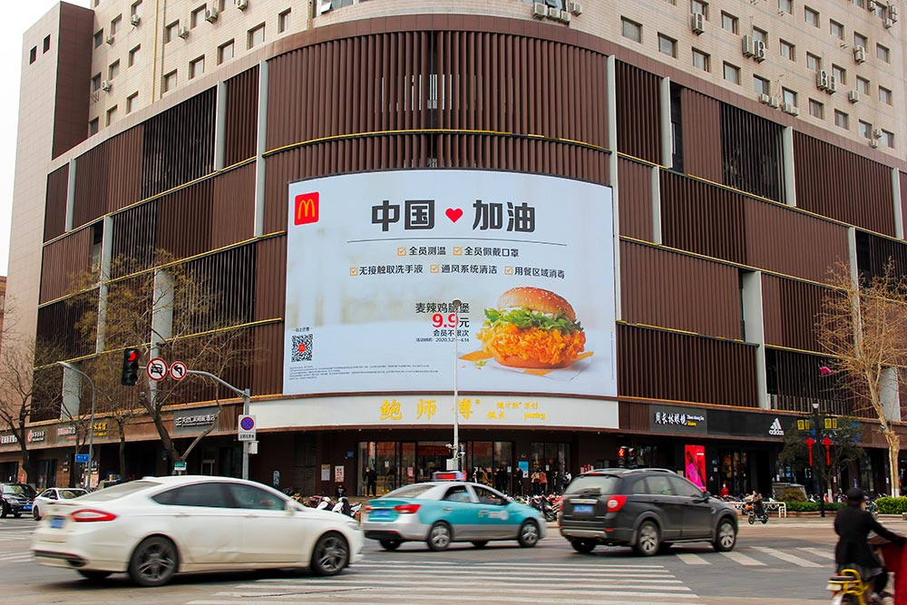 (麥當勞投放“省俯”濟南泉城路彩雲大廈戶外LED屏廣告)