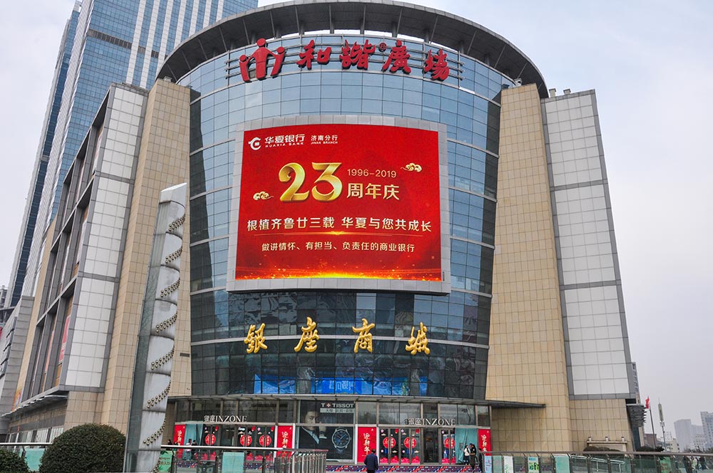 (華夏銀行投放“經(jīng)十屏”銀座和諧廣場戶外LED屏廣告)