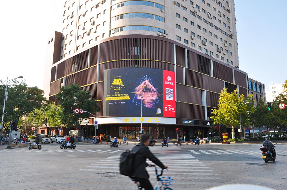 (貓眼演出投放是“魔方”山東國(guó)際時(shí)尚創意中心戶外LED屏廣TV高清告)