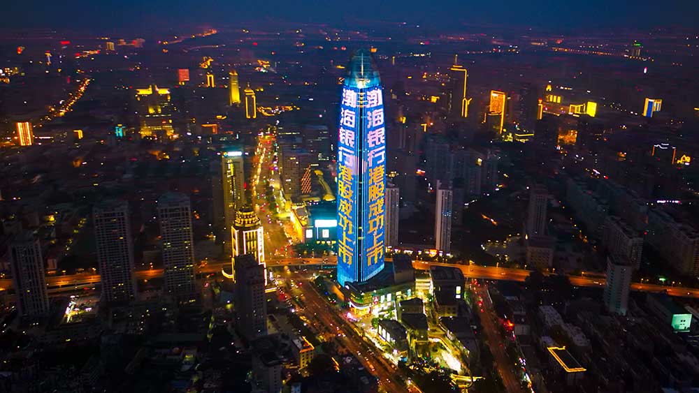 (渤海銀行投放濟南地标媒體-濟南綠地中心廣告)