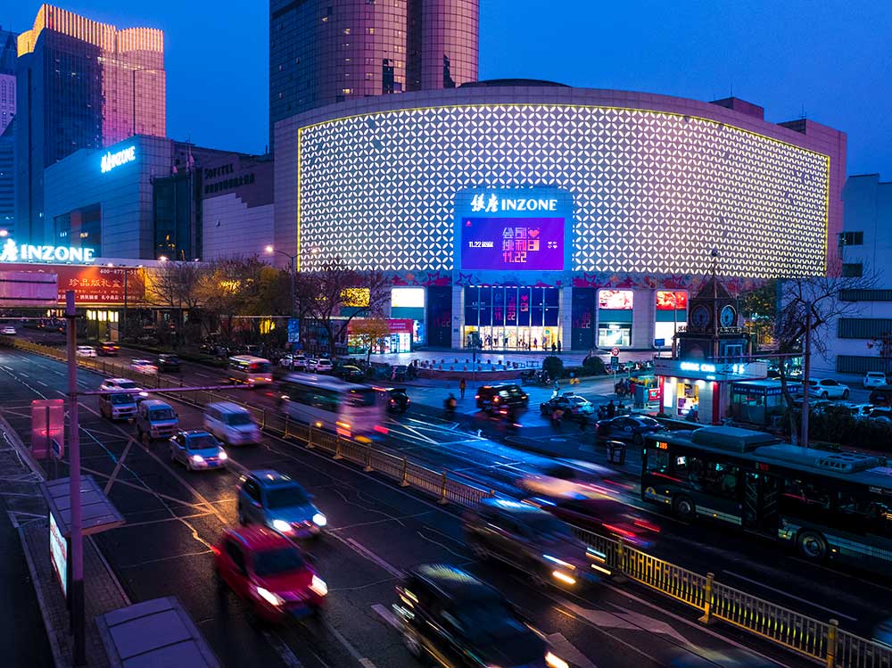 (銀座集團投放“旗艦商屏”山東銀座商城旗艦店戶外LED屏廣告)