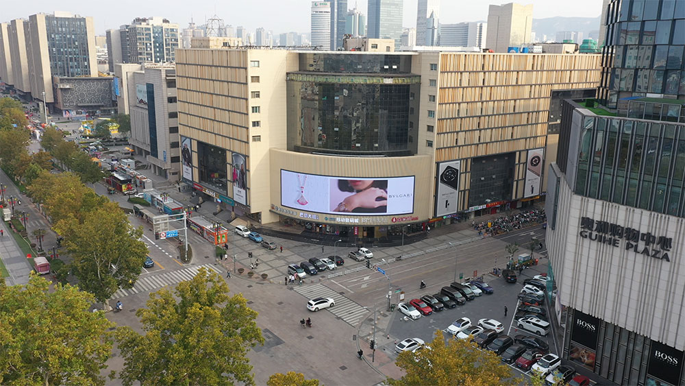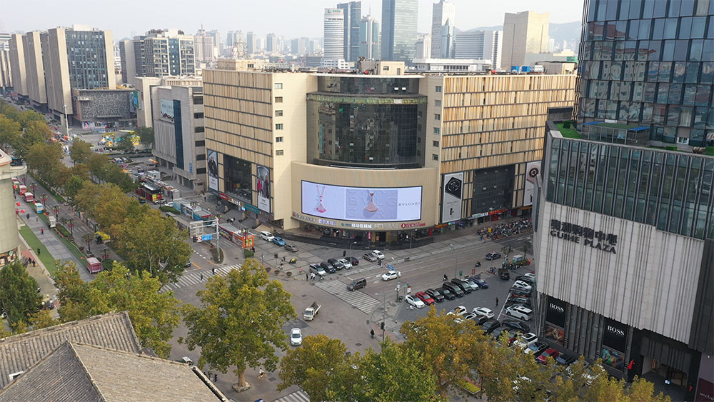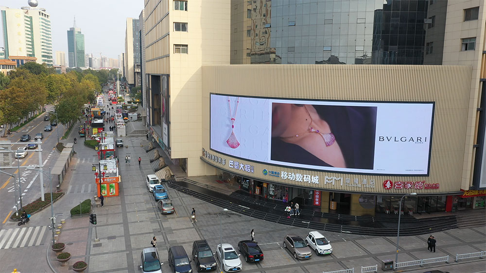 (寶格麗投放“泉眼”泉城路齊魯國(guó)際大廈戶外LED屏廣告)
