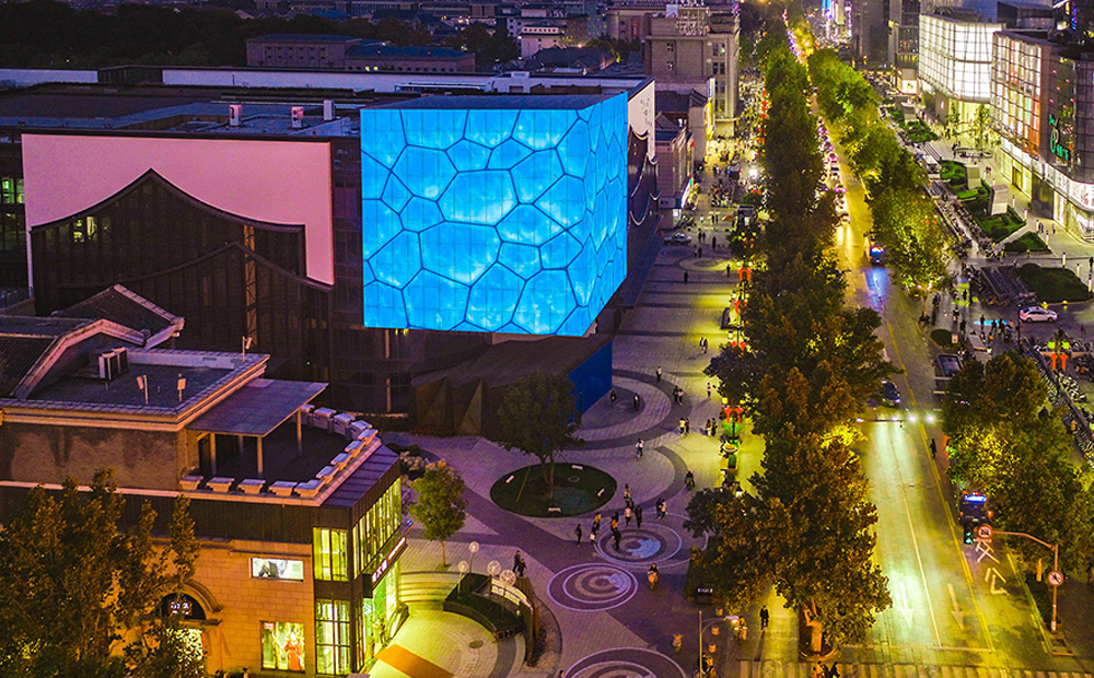 山東國(guó)際時(shí動漫飄雪)尚創意中心戶外LED屏面(miàn)積780平方米。 “魔方”外型酷似方形的盒子,色彩亮麗、五彩斑斓,是泉城路商業街的一大亮點,媒體前有廣場飄雪影院、後(hòu)有街區,與芙蓉街相連接,是活動落地的最佳場所。