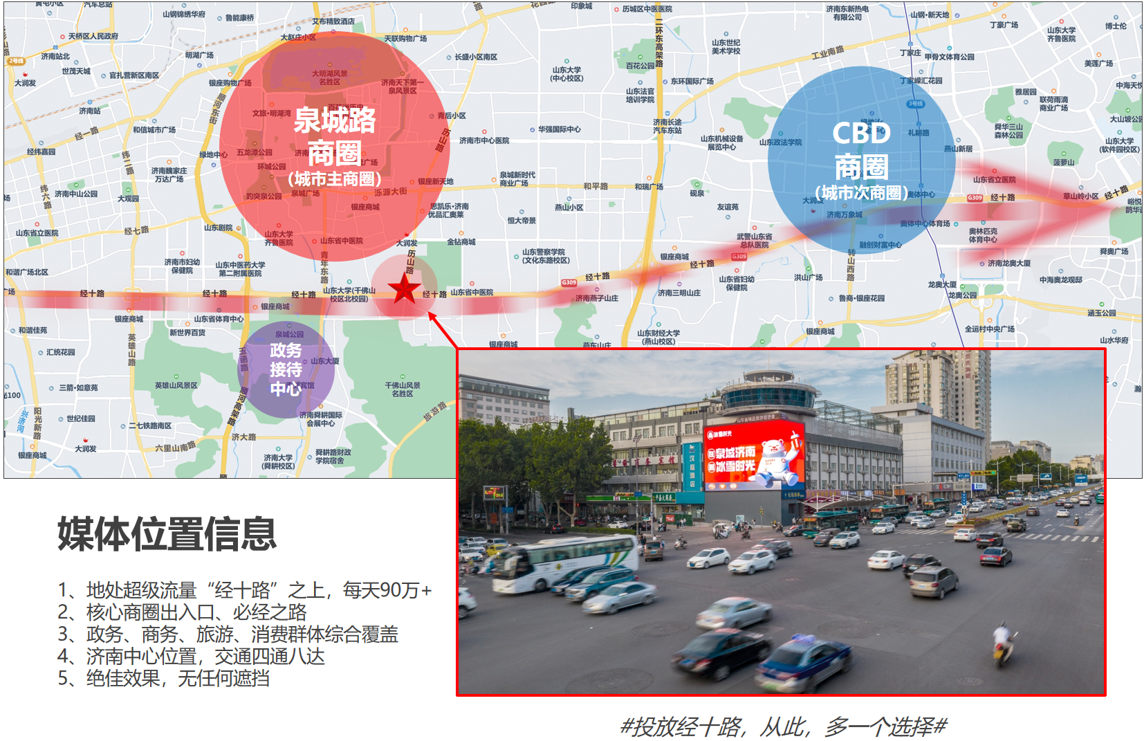 【媒體位置】泉城路西段,與省府前街交叉口東北角(山東省政府旁)