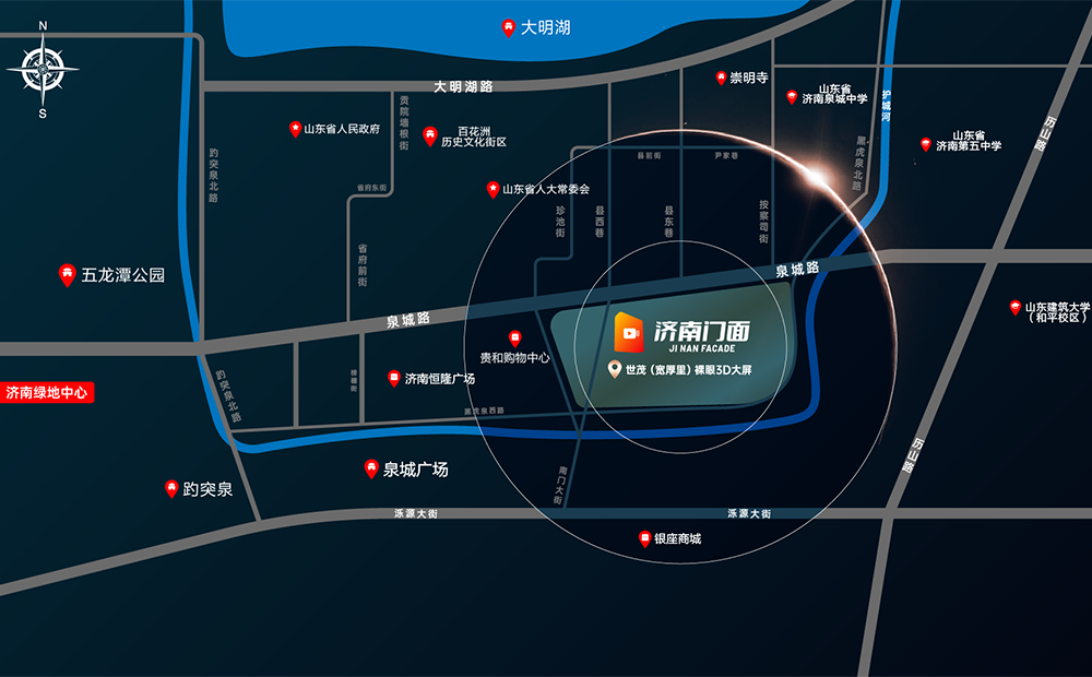 【媒體位置】濟南世茂廣場、寬厚裡(lǐ)商業街出入口,泉城路東段,與舜井街美麗姑娘交彙處東南角(山東省政協對(duì)面(miàn))