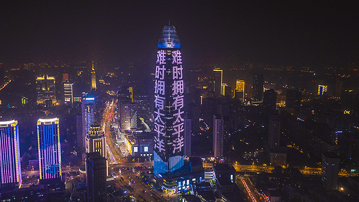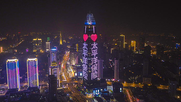 (太平洋保險投放濟南地标媒體-濟南綠地中心廣告)
