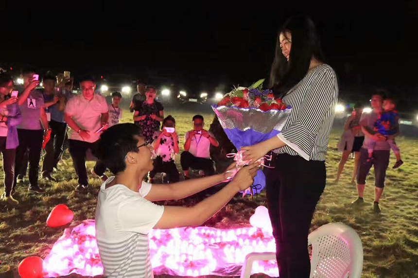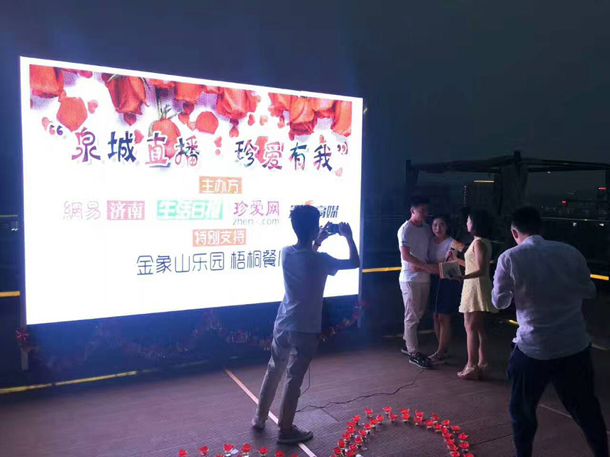 那一刻終于來了。5月20日晚上7點15分,泉城路77号19樓梧桐餐廳的露天餐廳裡(lǐ),火紅色的玫瑰花瓣鋪成(chéng)心形,西影院姐姐側的泉城第一高——綠地高媒外牆輪番滾動著(zhe)他們愛的宣言,“遊雪倩,你在時(s在線高清hí)你是一切,你不在時(shí)一切是你。”