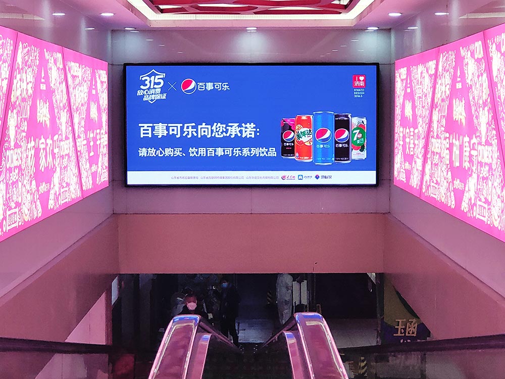 (百事(shì)可樂投放濟南商超百貨聯播屏廣告)