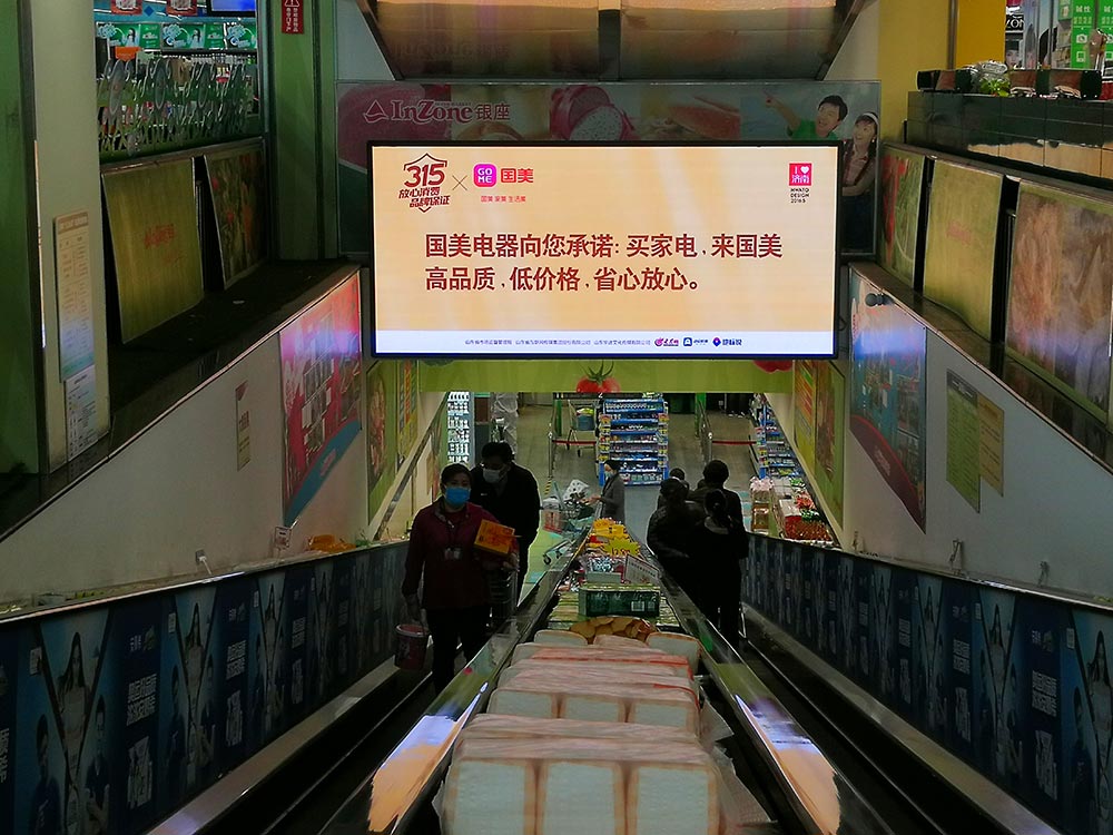 (國(guó)美電器投放濟南商超百貨聯播屏廣告)