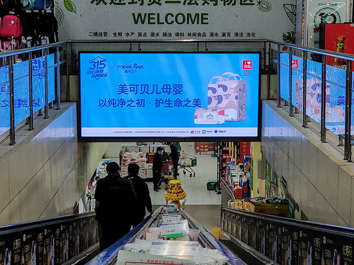 (聖貝雅投放濟南商超百貨聯播屏廣告)
