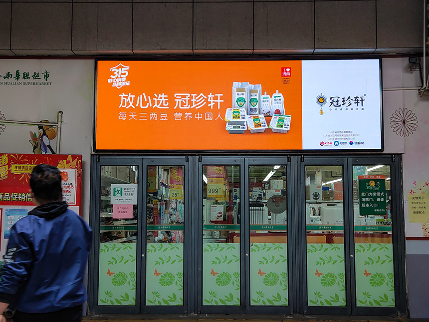 (冠珍軒投放濟南商超百貨聯播屏廣告)