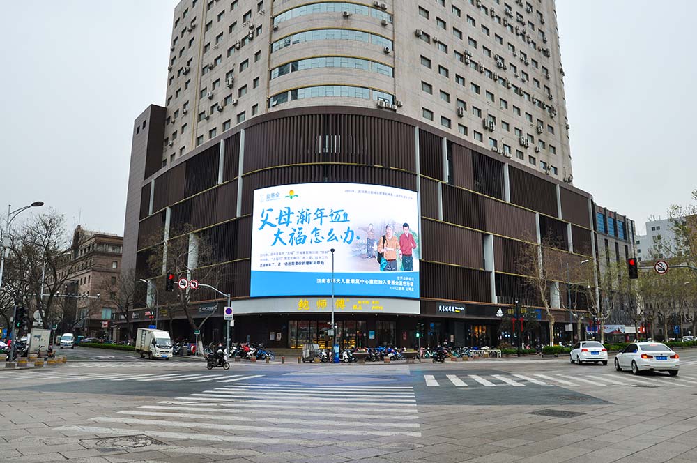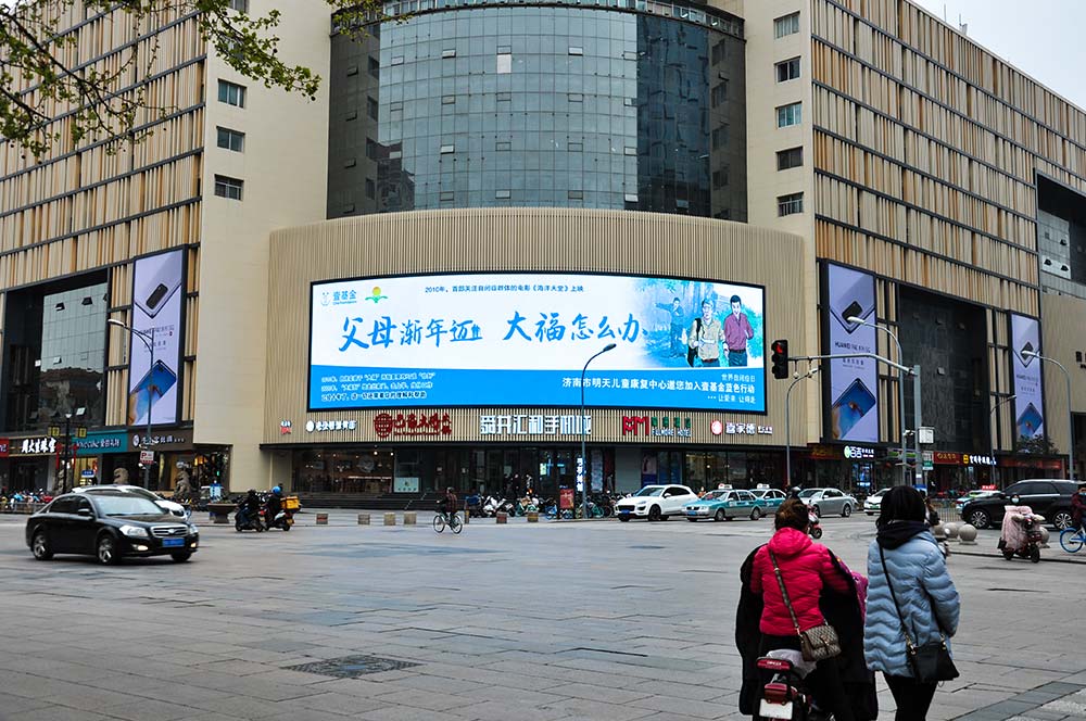 (明天兒童康複中心投放“泉眼”齊魯國(guó)際大廈戶外LED屏