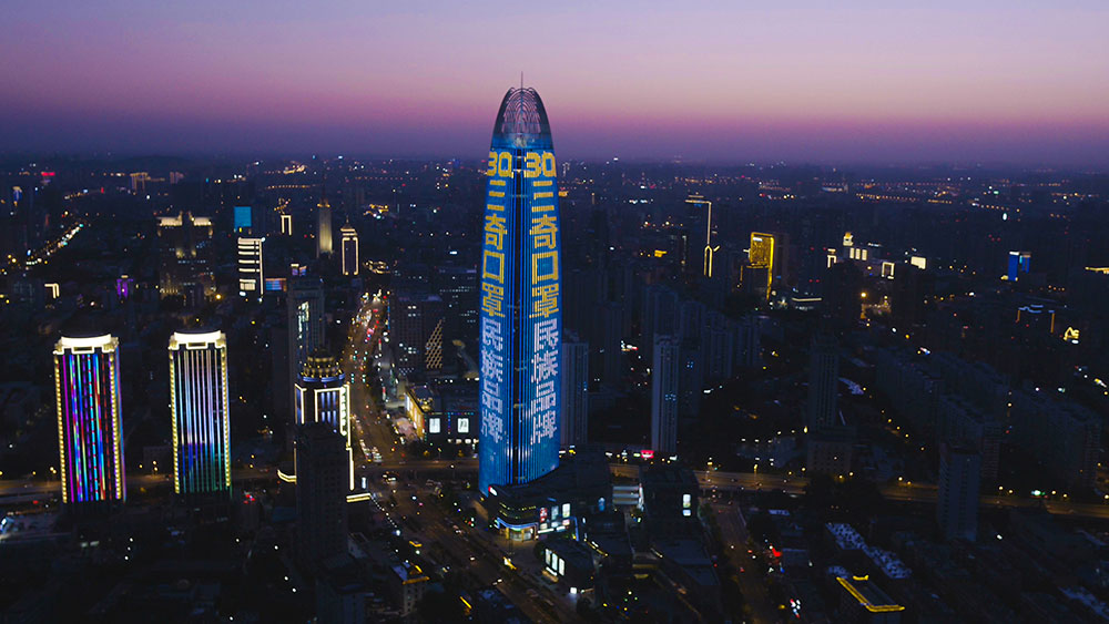 (三奇口罩投放濟南地标媒體-濟南綠地中心高媒廣告)