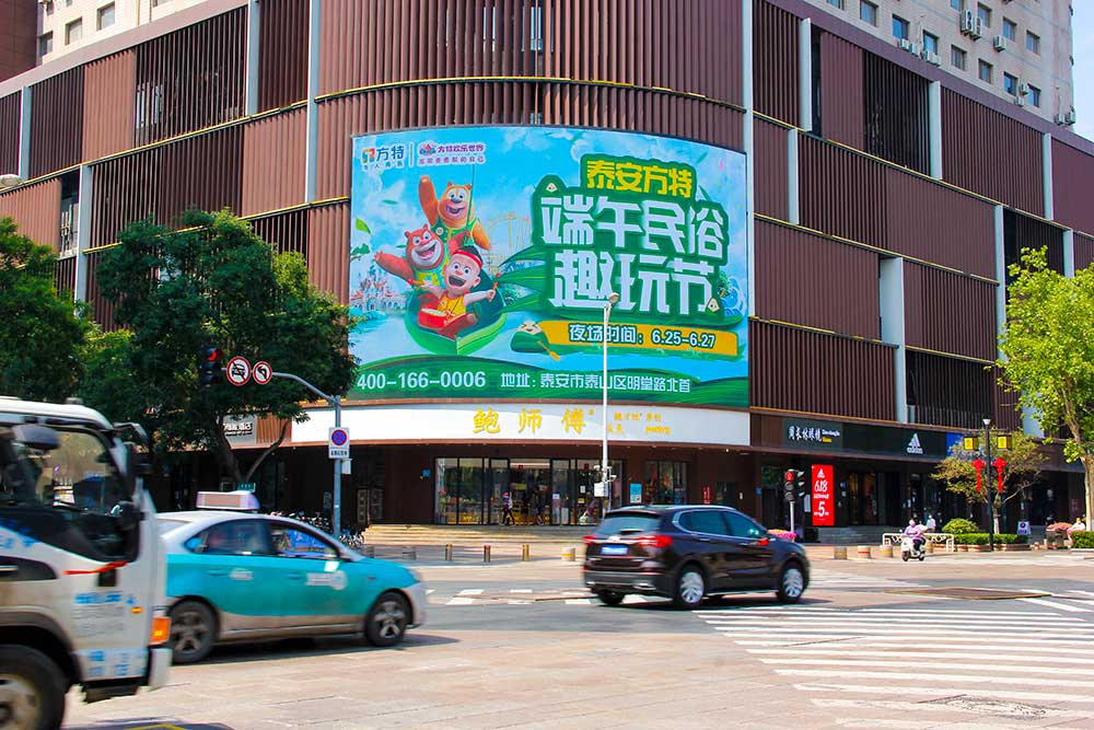 (泰安方特投放“網紅屏”世茂廣場(寬厚裡(lǐ))戶外LED屏廣告)