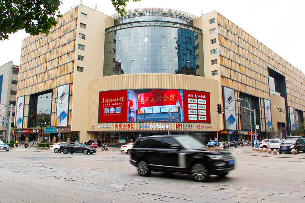 (老濟南四合院投放“泉眼”齊魯國(guó)際大廈戶外LED屏廣告)