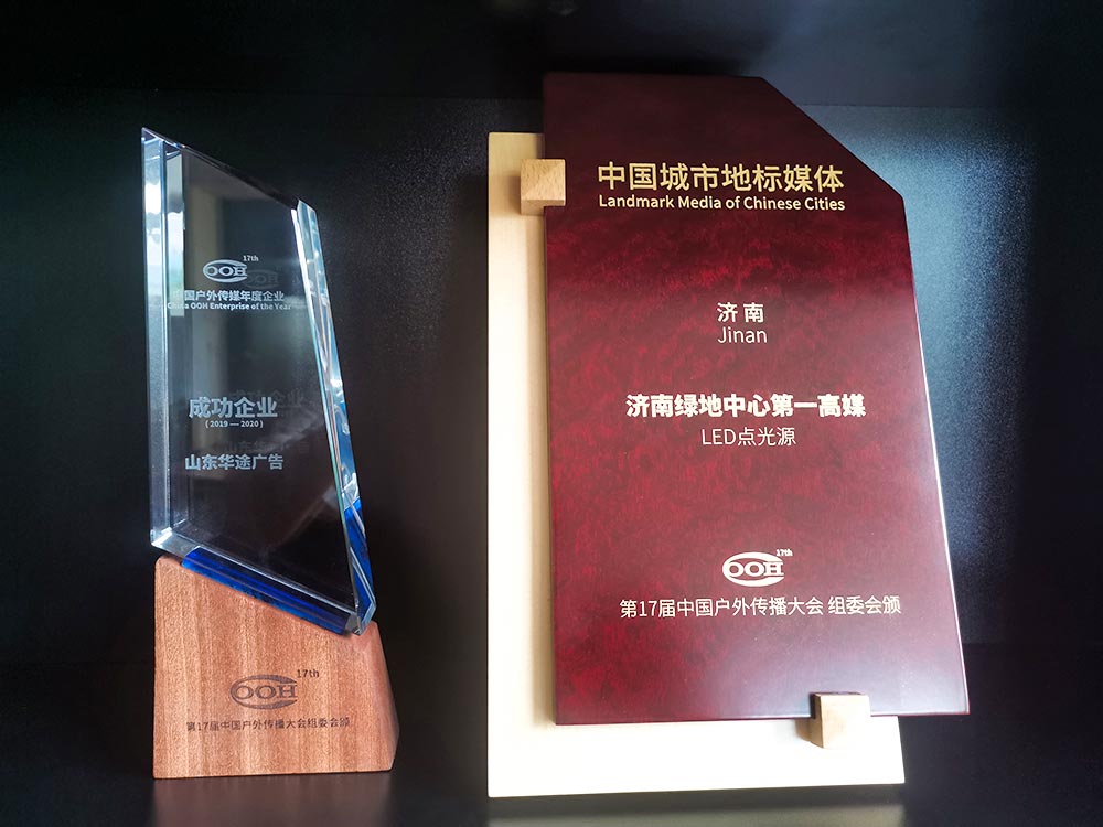 華途傳媒斬獲“中國(guó)戶外傳媒年度飄雪免費企業成(chéng)功企業(2019-2020)”大獎,其旗下運營的濟南綠地中心第一高媒高清影院榮獲“中國(guó)城市地标媒體”獎。