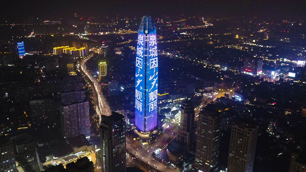 (山東大學(xué)投放“泉眼”齊魯國(guó)際大廈戶外LED屏廣告)