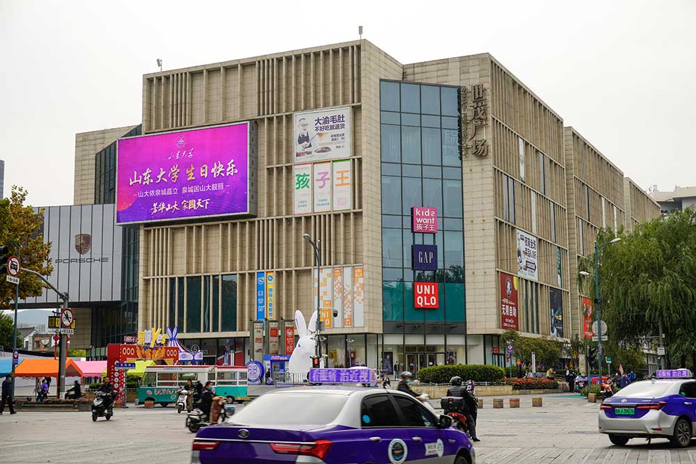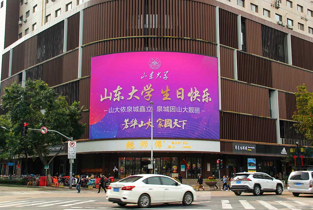 (山東大學(xué)投放“網紅屏”世茂廣場(寬厚裡(lǐ))戶外LED屏廣告)