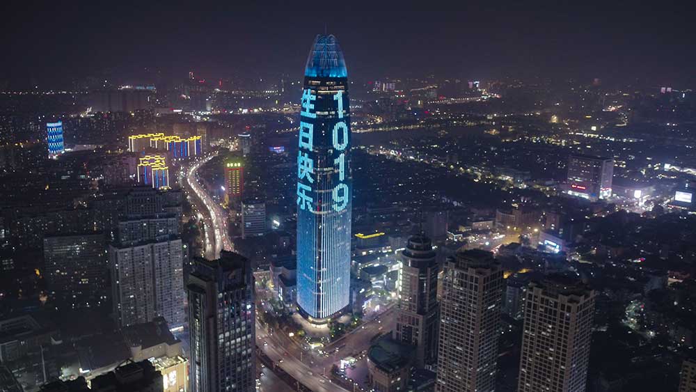 (李現粉絲投放濟南地标媒體-濟南綠地中心第一高媒廣告)