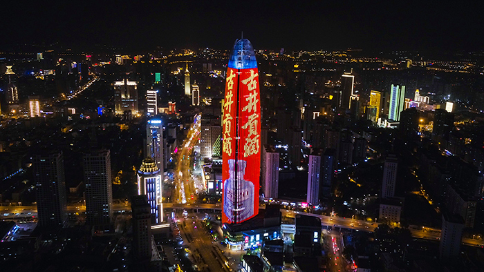 (古井貢酒投放濟南地标媒體-濟南綠地中心廣告)