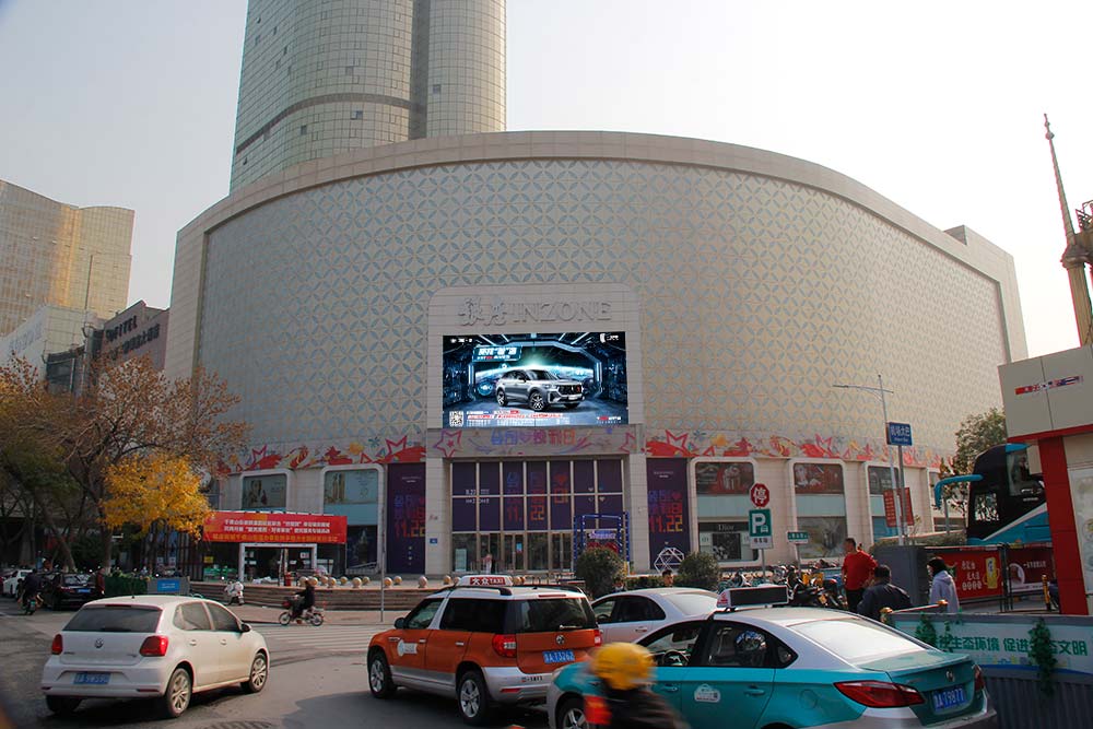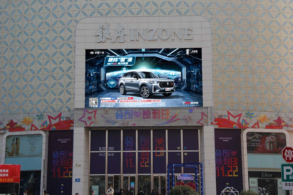 (一汽奔騰投放“旗艦商屏”山東銀座商城旗艦店戶外LED屏廣告)