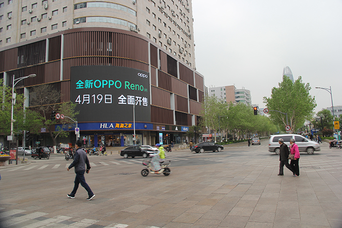 (OPPO投放“省俯”濟南泉城路彩雲大廈戶外LED屏廣告)