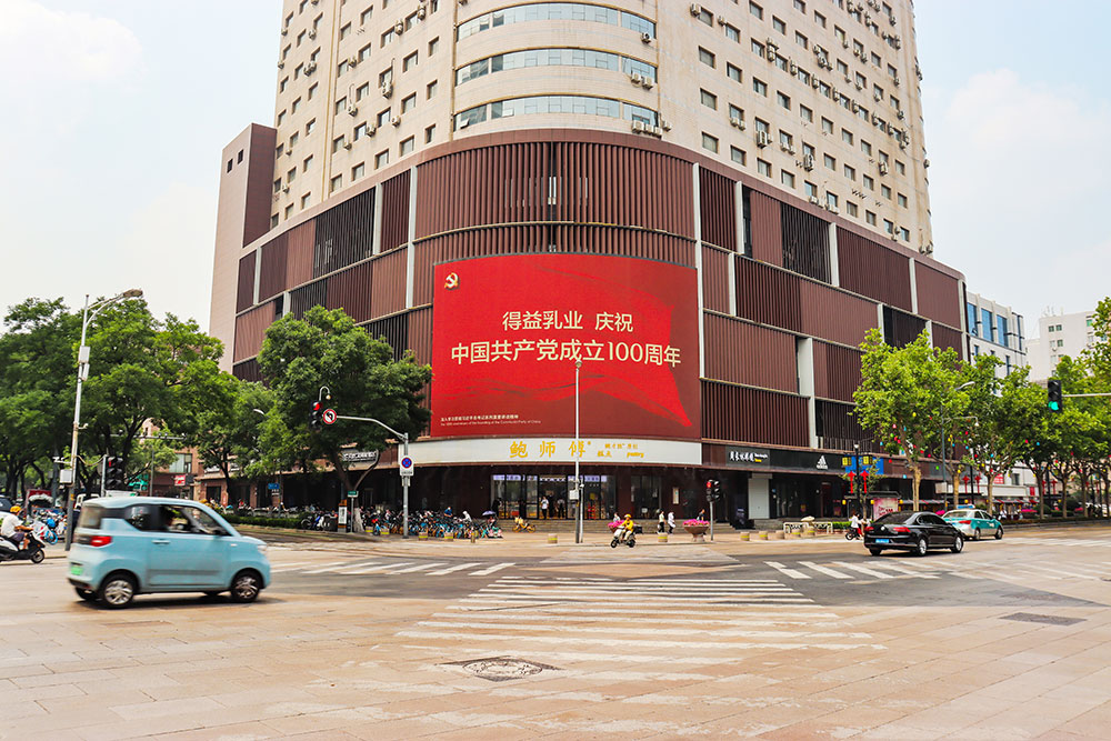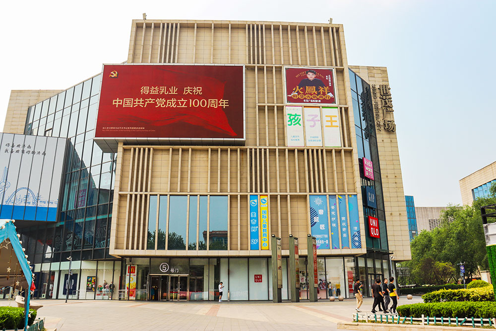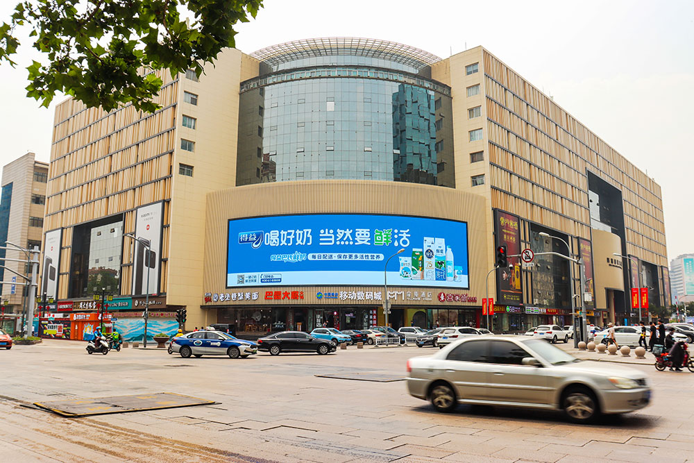 (得益乳業投放“網紅屏”濟南泉城路世茂廣場戶外LED屏廣告)