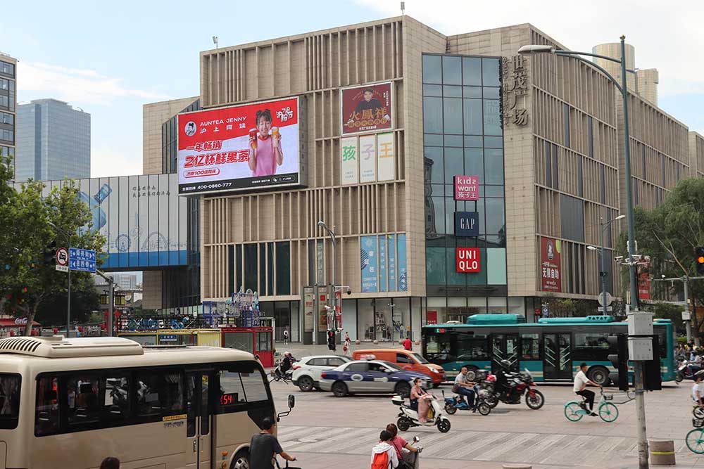 (滬上阿姨投放“網紅屏”泉城路世茂廣場戶外LED屏廣告)