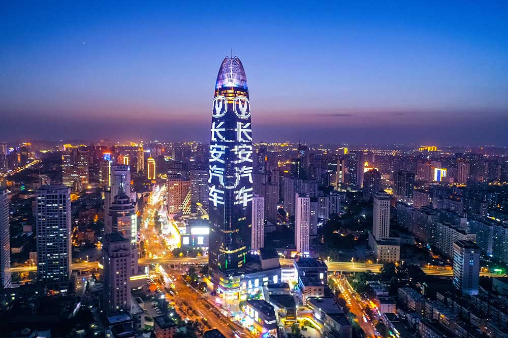長(cháng)安汽車聯合華途傳媒點亮濟南城市地标媒體燈光秀,