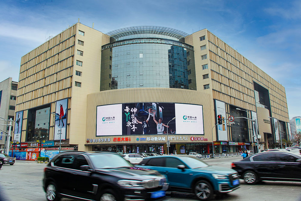 (中國(guó)人壽投放“泉眼”泉城路齊魯國(guó)際大廈戶外LED屏廣告