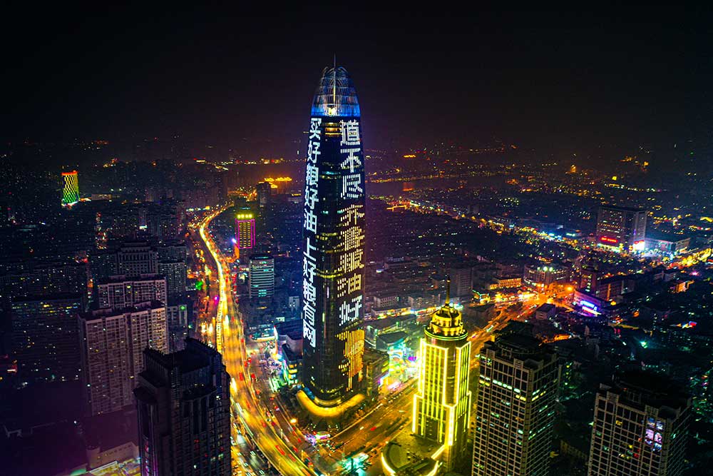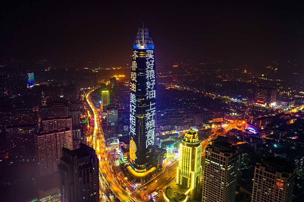 (齊魯糧油投放濟南地标媒體--濟南綠地中心廣告)