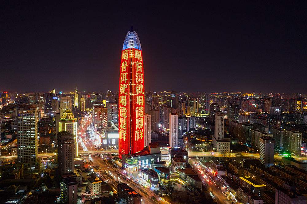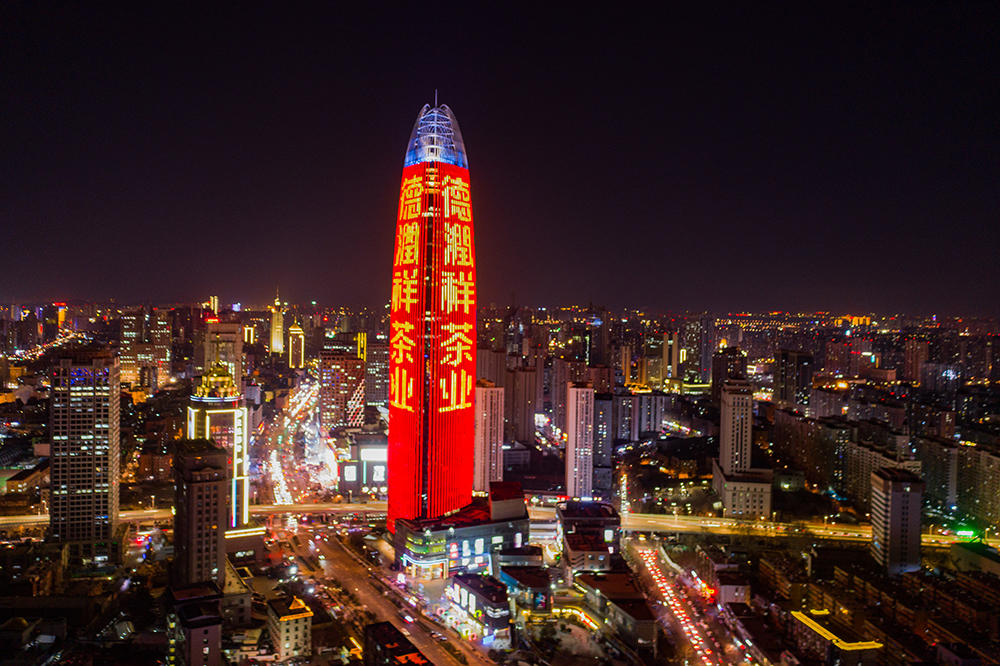 (德潤祥茶業投放濟南地标媒體--濟南綠地中心廣告)