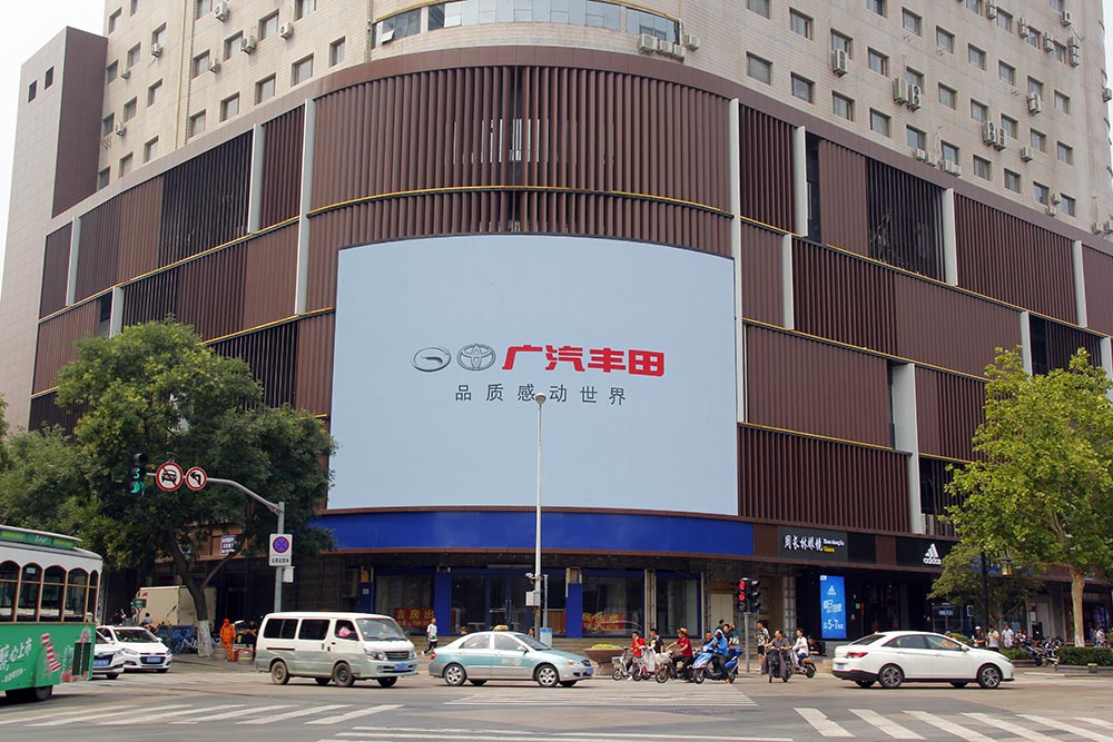 (廣汽豐田投放“省俯”濟南泉城路彩雲大廈戶外LED屏廣告